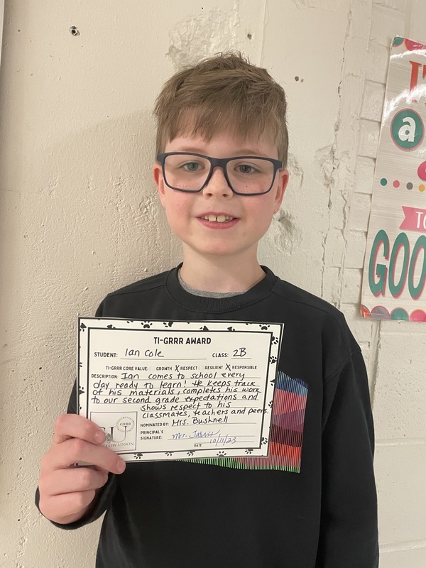 This week we are highlighting several students who have earned a Ti-GRRR Award. Well done second graders for showing up in this space in October!
